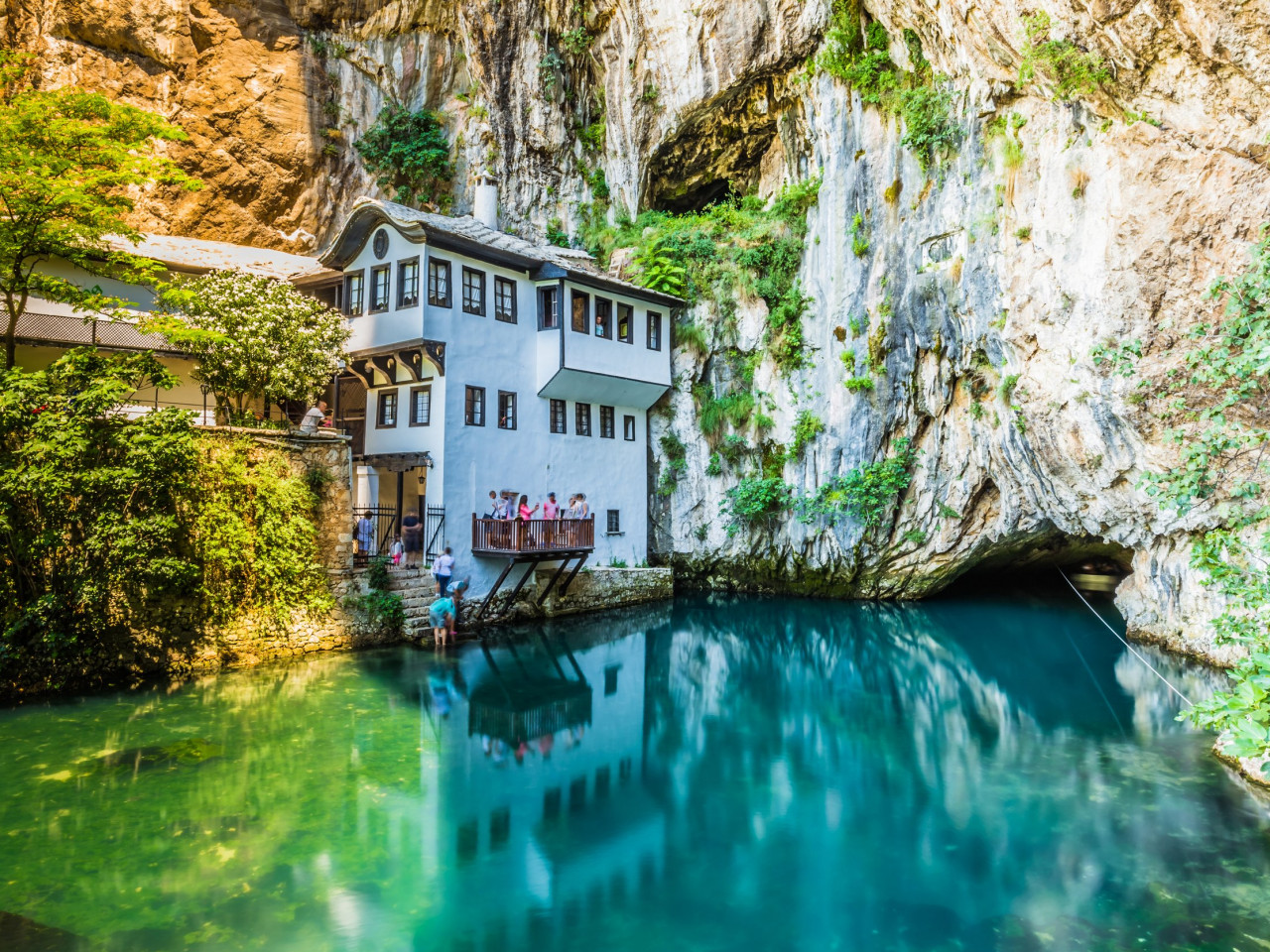 En chemin, arrêt à Blagaj pour découvrir le monastère des Derviches, adossé à une falaise et niché au bord de la source cristalline de la rivière Buna, un site spirituel et pittoresque d’une grande sérénité.